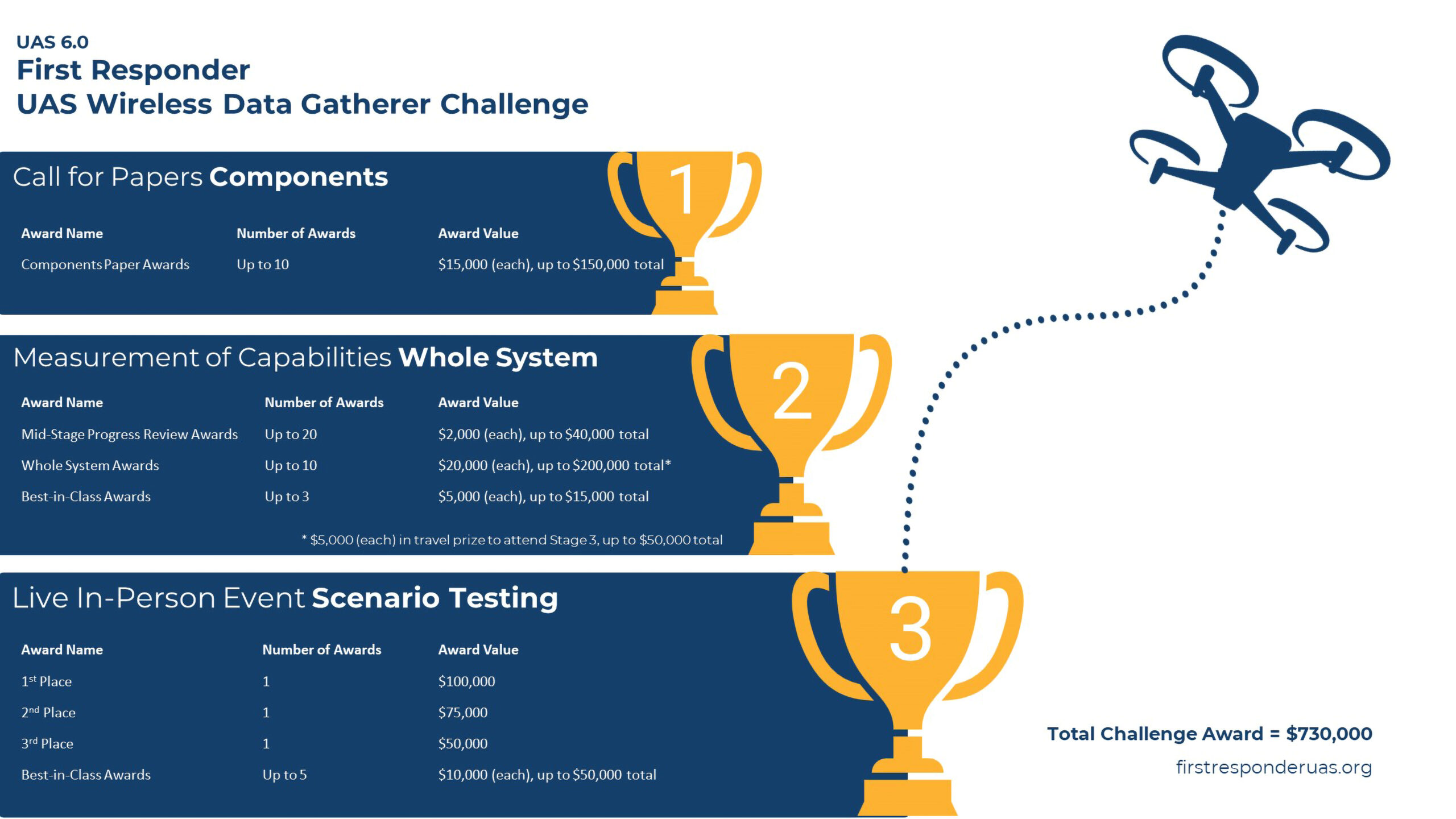 In this stage, all eligible contestants can enter. Each contestant will need to purchase, build, or adapt an existing UAS capable of flight, sensing, and with radio hardware necessary to satisfy the Required Specifications.